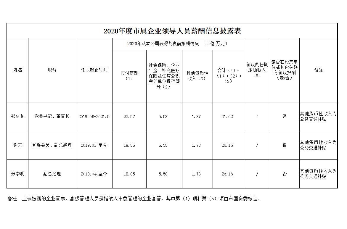 2020年度滁州市興滁礦業(yè)投資有限公司領(lǐng)導(dǎo)人員薪酬信息披露表
